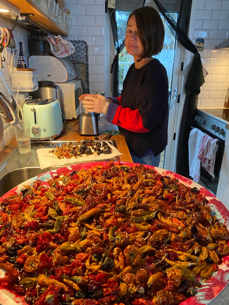 Malt sista omgången av Chiliblandningen idag, de chilis som nu är kvar passar bäst till chili(fisk)blandningen. Den ska jag mala mer av. Men frågan är om det inte blev för mycket av dem och för lite av ”bestsellerns” chilisorter. Förra året var det tvärtom. Göromgörrätt!