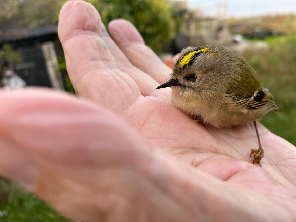 Kungsfågeln är Europas minsta fågel att det här är helt klart den minsta fågel jag någonsin sett. Flygförmågan var det lite si och så med. När jag väl fått tag i och burit ut den till rosenbusken uppmärksammade katterna mig om att fågeln hade tappat fotfästet och blivit hängande upp och ner – i ett spindelnät! – Vilket om inte annat bekräftar att ett spindelnät är mycket starkt, faktiskt starkare än stål i förhållande till sin vikt. Efter en ny utryckning från den lokala räddningstjänsten slutade även det äventyret lyckligt.
