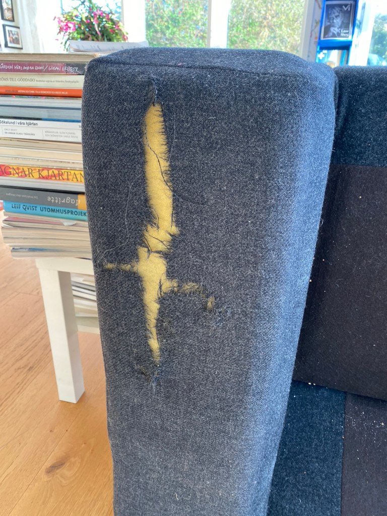 Hon: efter 23 år i trogen tjänst har våra soffor till slut gett upp! Hålen blev större och större, och stearinfläckarna efter ett av de föräldrafria partajen i huset i Nockeby verkade framträda mer och mer.