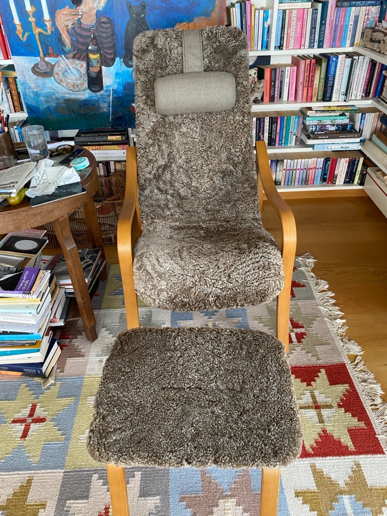 Och bara armstöden och fötterna behövde skruvas på! Fixade han galant.