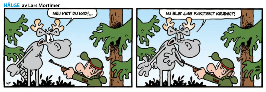 Älgjakten har börjat, vilket min skjutglade granne påminner mig om. Vi läser båda Även här sympatiserar vi med den angripne parten i konflikten: