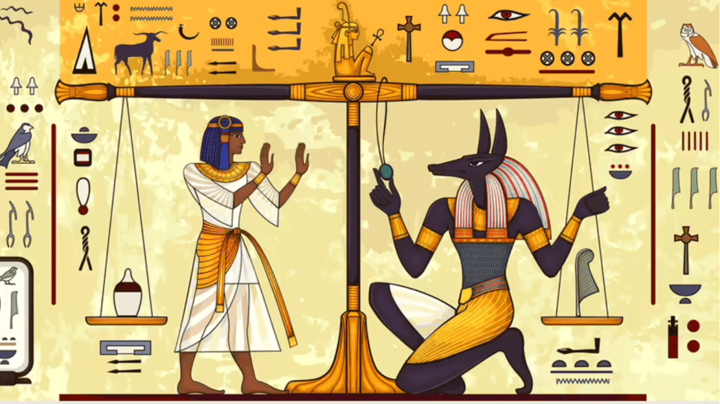 Anubus väger alla stackars egyptiers syndiga hjärtan mot sanningens lätta fjäder.