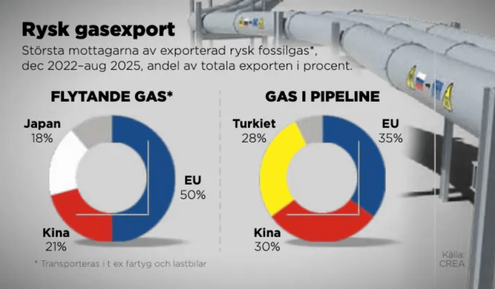 DAGENS DUBBELMORAL.2: EU pratar ofta om hur viktigt stödet till Ukraina är. Men under den stora ryska invasionen har EU-länder betalat ännu större summor till Ryssland för fortsatt import av gas och olja. – De finansierar kriget mot sig själva. Vem fan har hört något liknande?, undrade USA:s president Donald Trump i FN:s generalförsamling i september. Och det hade han helt rätt i.